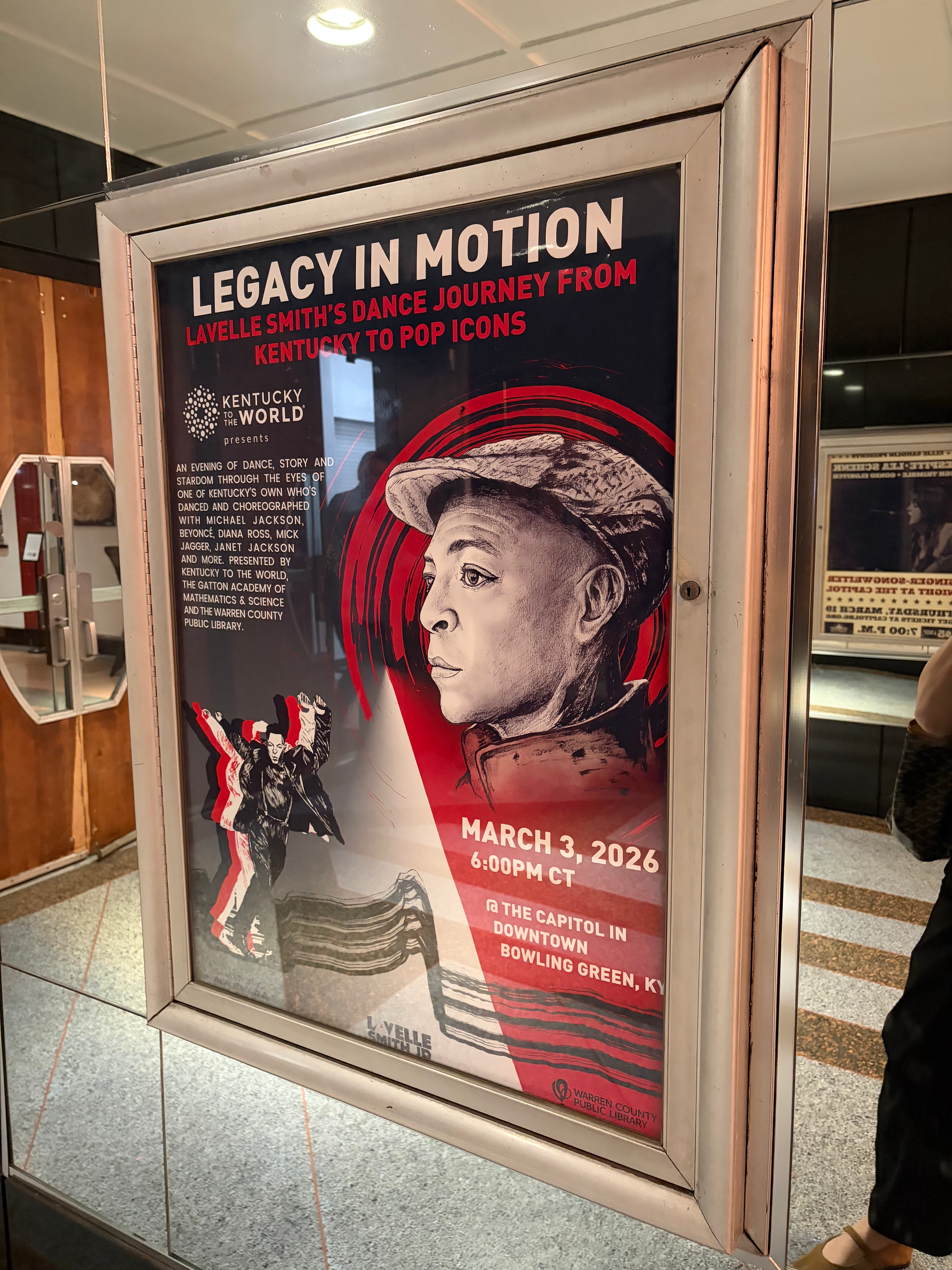 In March 2026, guests of Kentucky to the World gathered at The Kentucky Center or Performing Arts in Louisville, KY, and at The Capitol, Downtown Bowling Green, KY, for two unforgettable evenings with LaVelle Smith Jr., - two events celebrating dance, story and stardom through the eyes of one of Kentucky’s own who’s danced and choreographed with Michael Jackson, Beyoncé, Diana Ross, Mick Jagger, Janet Jackson and more.